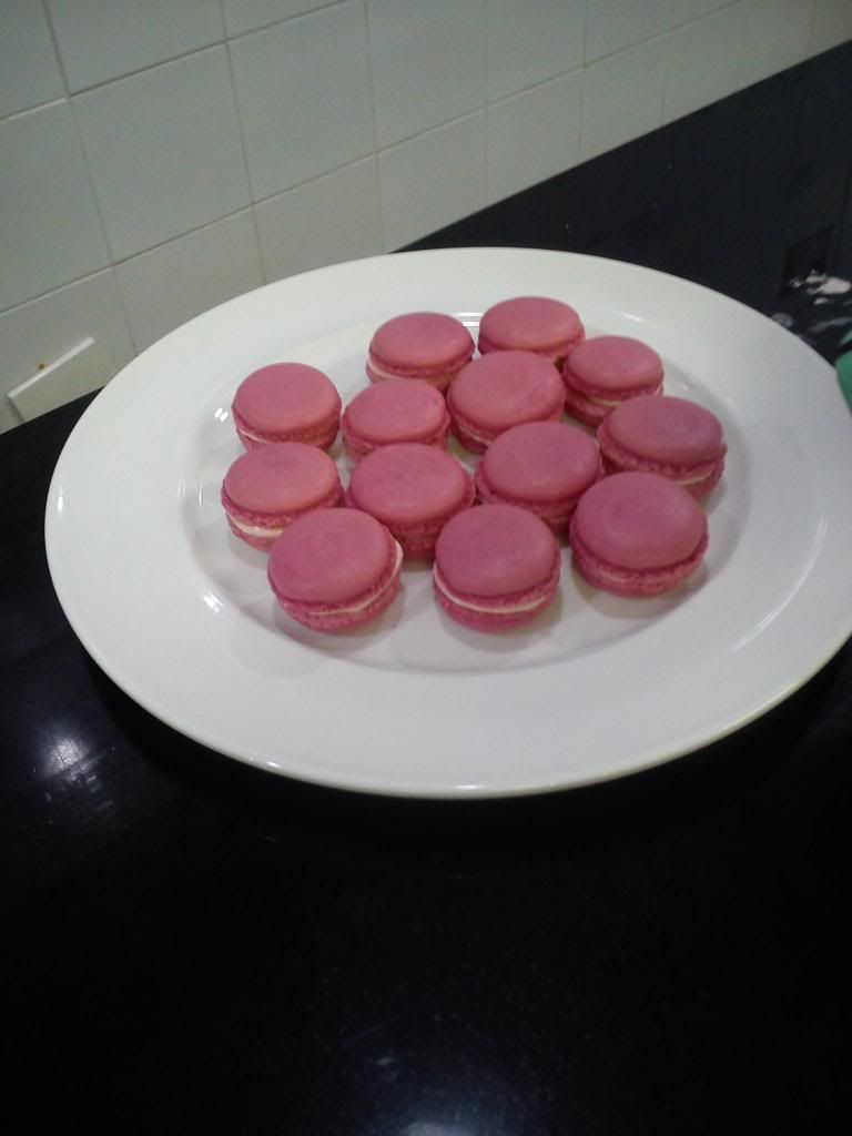 Finished products! Hahaha Nina and I's macarons are the white ones. We were so excited that we forgot to put our food colorings. Hihi we just put different fillings so it would be colorful. We took home about 15 macarons each.